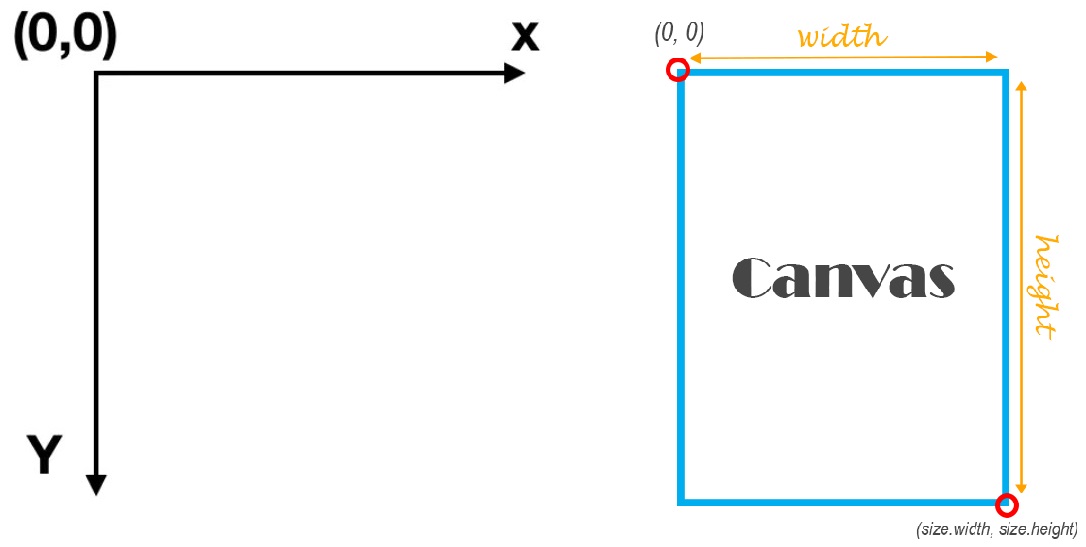 Canvas 内的坐标系,其原点在左上角,水平向右为 x 轴正方向,垂直向下为 y 轴正方向