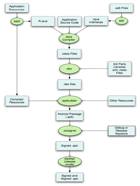 - 通过AAPT工具进行资源文件(包括AndroidManifest.xml、布局文件、各种xml资源等)的打包,生成R.java文件。